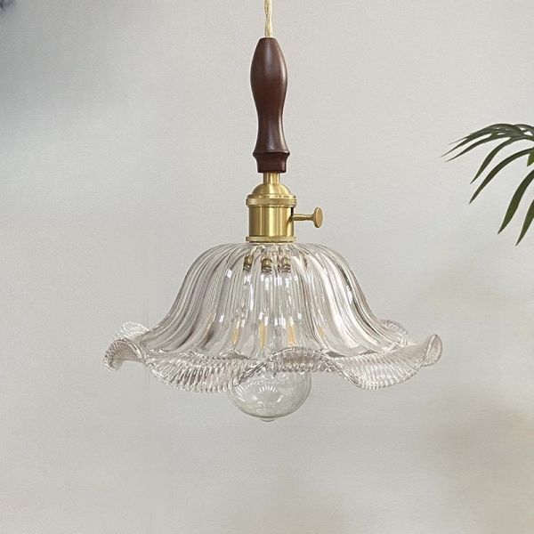Vintage Floral Glass Pendant Light, Scalloped Flower Shade Hanging Lamp for Kitchen Island