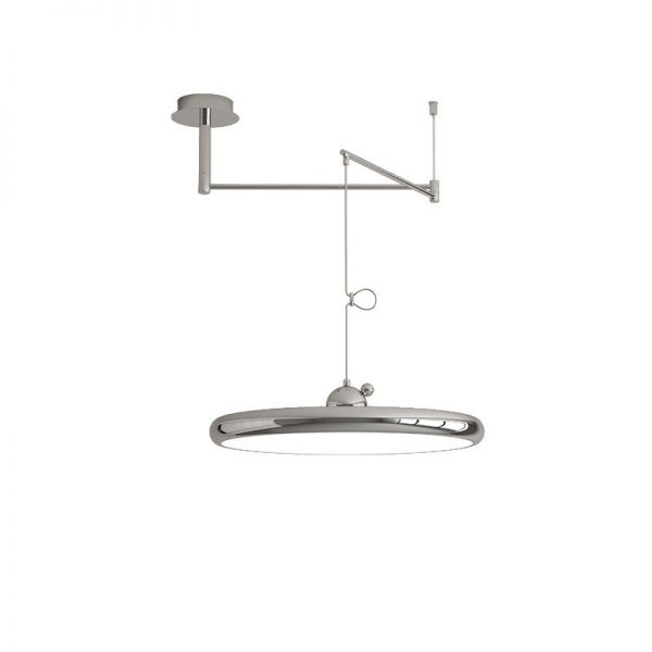 Bauhaus Chrome LED Pendant Light, Adjustable UFO Hanging Lamp with Glare-Free Diffusion for Dining Room