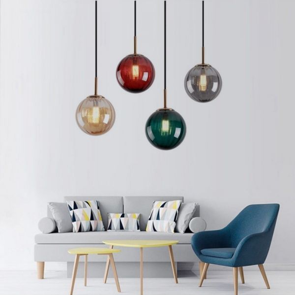 Mid-Century Glass Pendant Light Fixture, Minimalist Hanging Lamp with Adjustable Cord for Kitchen Island Dining Room, 11 Inch