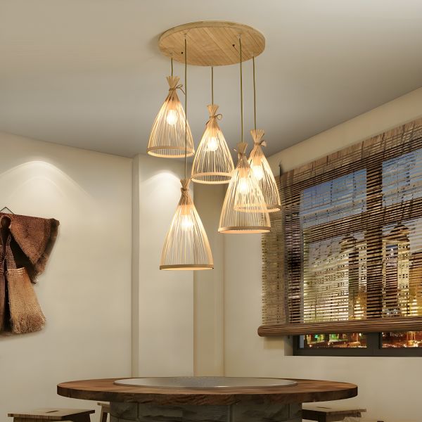 Japandi Woven Bamboo Pendant Light Fixture Adjustable Hanging Ceiling Lamp for Dining Room