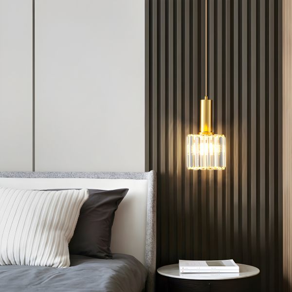 Contemporary Luxe Crystal Cylinder Pendant Light, Prismatic Hanging Fixture for Kitchen Island or Bedside