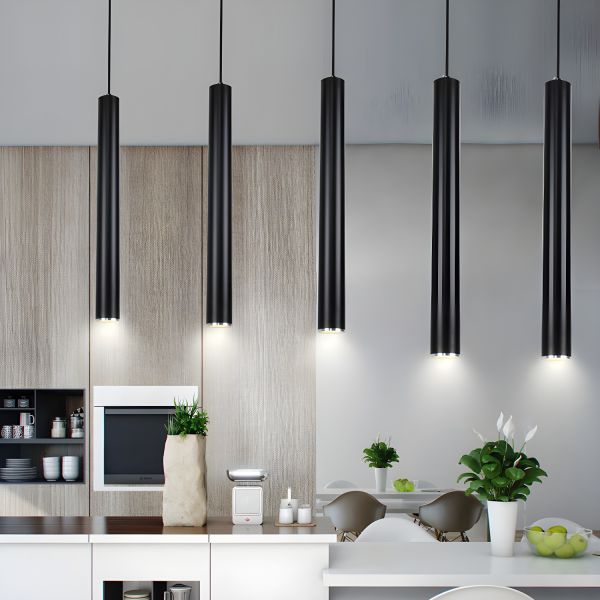 Minimalist Cylinder LED Pendant Light, Slim Aluminum Tube Hanging Fixture for Kitchen Island and Bedside