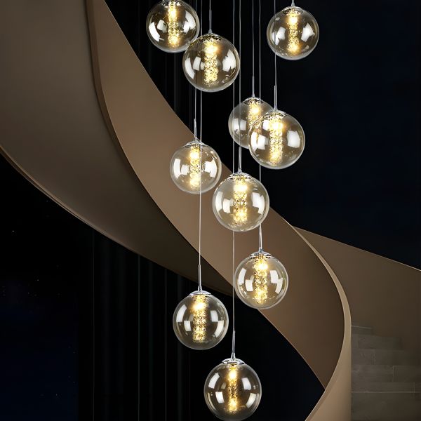 Contemporary Glass Globe Cluster Chandelier, Adjustable Crystal Pendant Lighting for High Ceilings