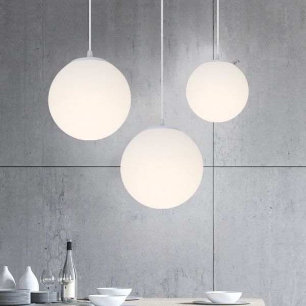 Mid-Century Modern Globe Pendant Light, Minimalist Sphere Hanging Lamp, Opal White Shade