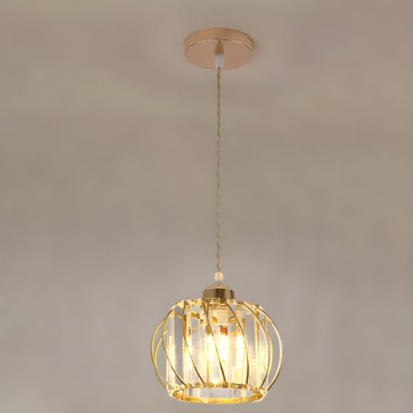 Contemporary Gold Crystal Pendant Light, LED Drop Fixture for Kitchen Island, Bedroom & Dining Room