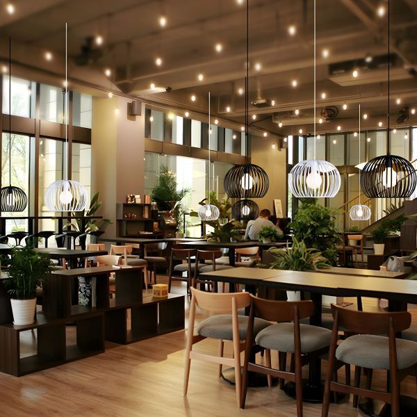 Industrial Farmhouse Metal Globe Pendant Light, Open Cage Hanging Fixture for Kitchen Island