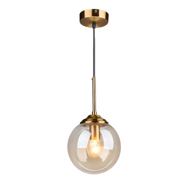 Mid-Century Glass Globe Pendant Light with Brushed Brass Finish for Kitchen Island or Dining Room