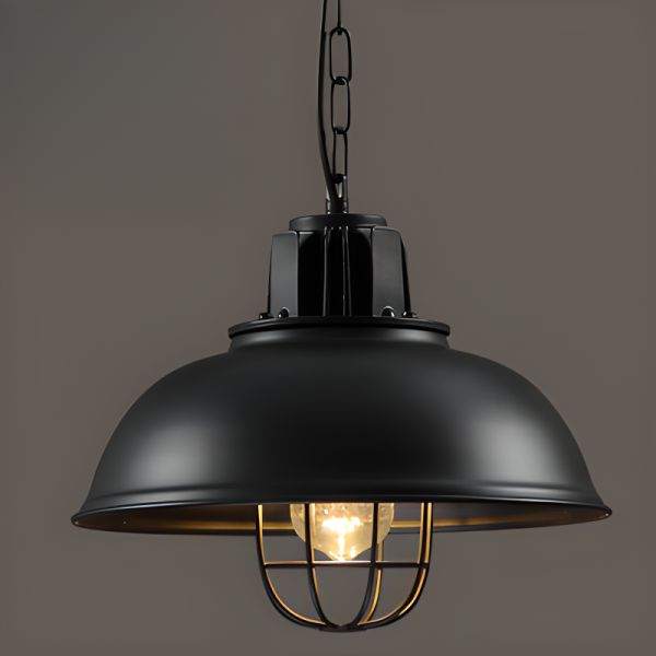 Industrial Farmhouse Pendant Light, Matte Black Barn Hanging Fixture with Metal Dome Shade