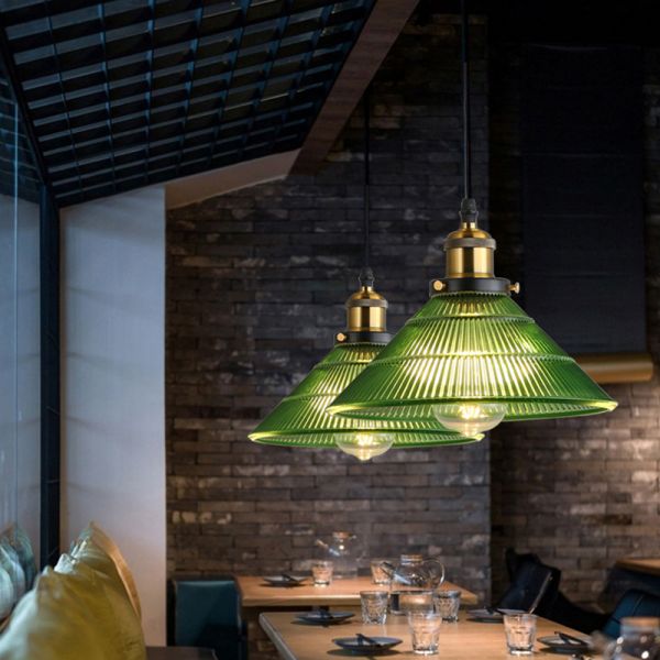 Mid-Century Ribbed Glass Pendant Light, Vintage Cone Fixture for Kitchen Island Dining