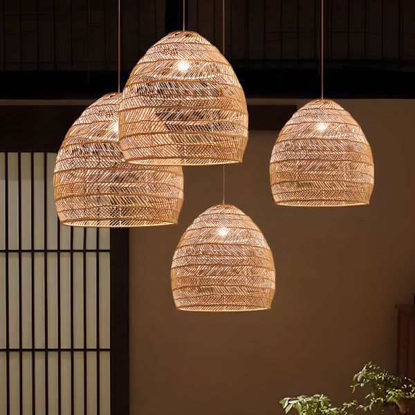 Boho Coastal Handwoven Rattan Pendant Light, Natural Wicker Hanging Fixture for Dining Room