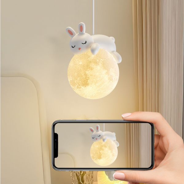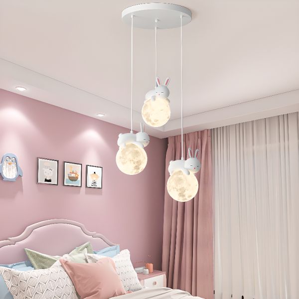 Whimsical Sleeping Animal Moon Pendant Light, Soft Ambient Nursery Hanging Lamp with 3D Texture
