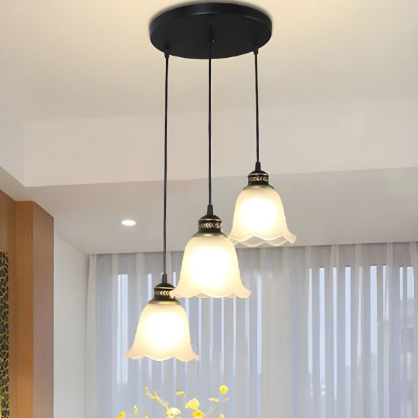 Vintage Floral Glass Pendant Light, Hand-Blown Flower Shade Hanging Lamp for Kitchen Island