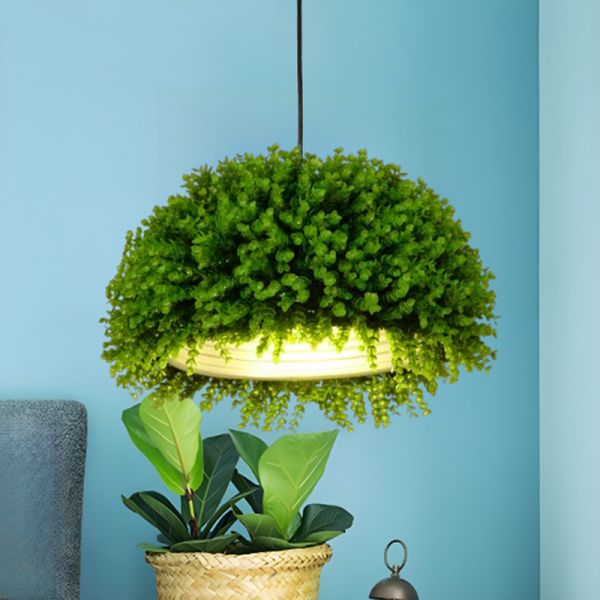 Industrial Farmhouse Faux Plant Pendant Light, Botanical Hanging Fixture with Artificial Greenery