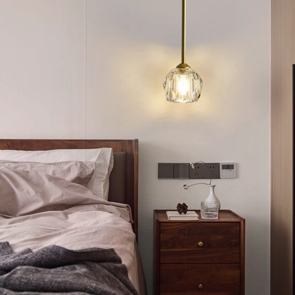Luxe Geometric Crystal Mini Pendant Light, Brushed Brass Hanging Fixture for Kitchen Island or Bar