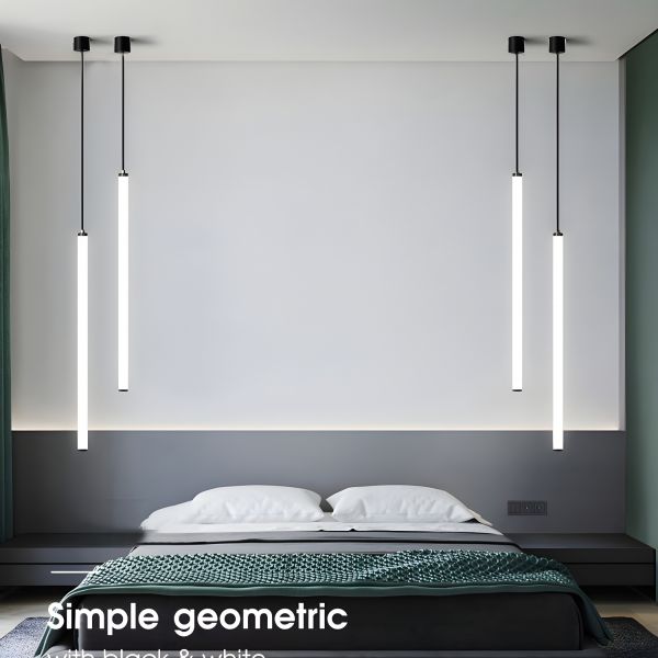 Minimalist Cylinder LED Pendant Light, Slim Aluminum Tube Hanging Fixture for Kitchen Island and Bedside