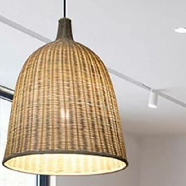 Coastal Bohemian Woven Rattan Pendant Light, Natural Bamboo Dome Fixture for Kitchen Island or Dining Room
