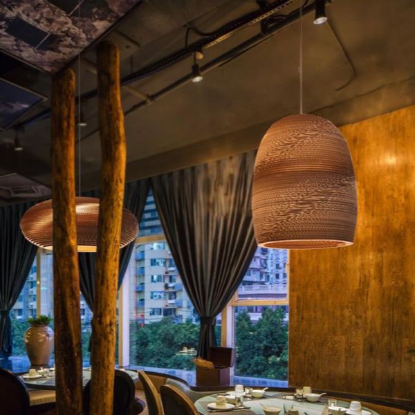 Organic Rustic Corrugated Paper Pendant Light, Recycled Cardboard Hanging Lamp for Warm Ambient Glow