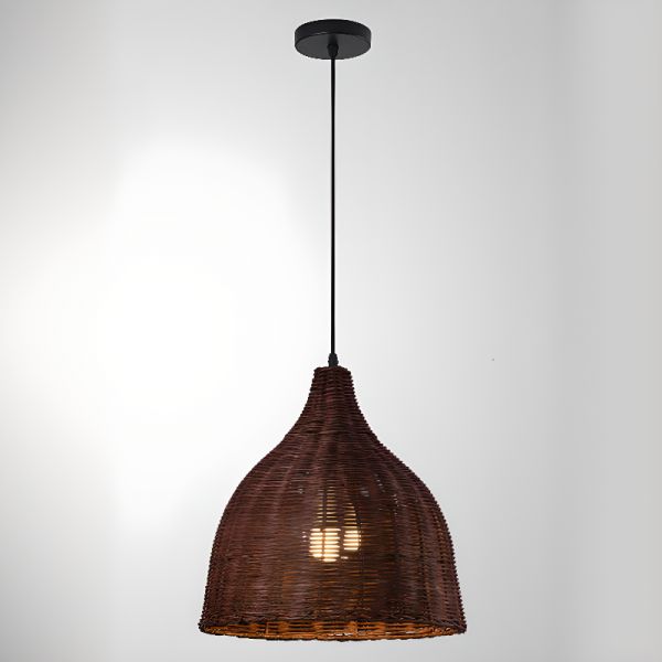Boho Rattan Pendant Light Fixture, Hand-Woven Wicker Dome Chandelier for Dining or Kitchen