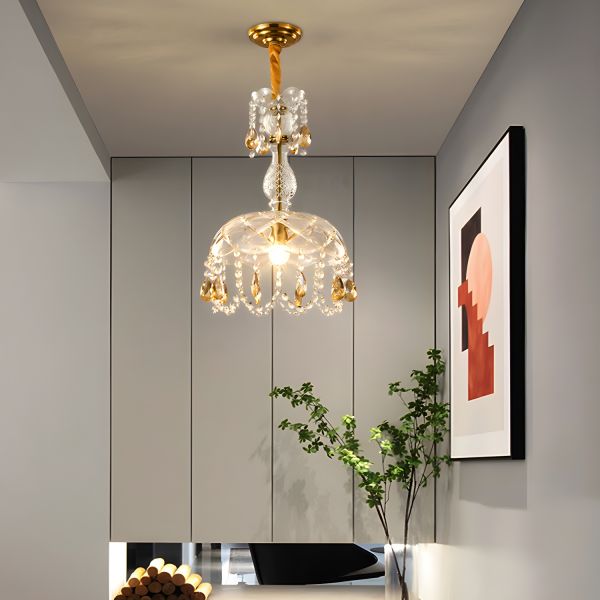 Vintage Glam Crystal Pendant Light, Gold Hanging Fixture with Faceted Glass Shade