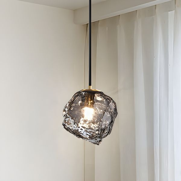 Sculptural Hammered Glass Pendant Light, Textured Irregular Hanging Fixture for Kitchen Island