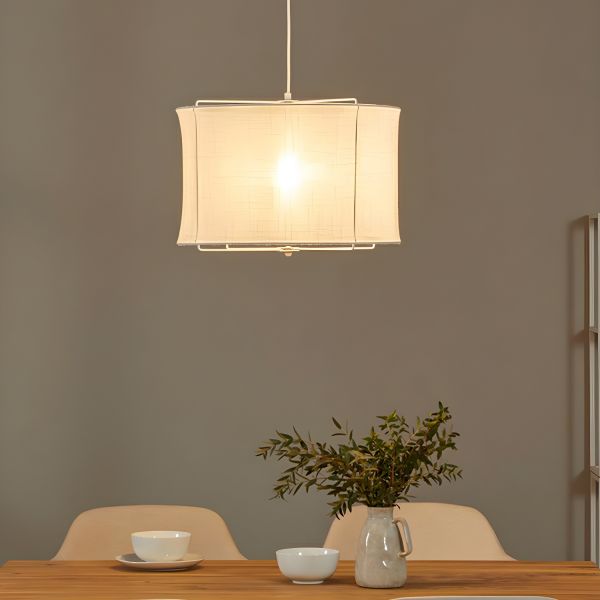 Transitional Linen Fabric Pendant Light with Metal Cage Frame for Soft Ambient Dining Glow