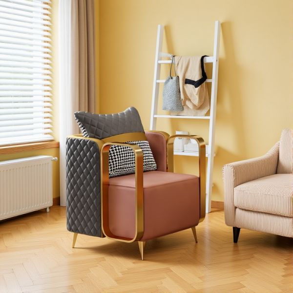 Modern Green Upholstered Lounge Chair with Pillow, Wide Seat, Solid Wood Legs for Living Room - Pink Linen