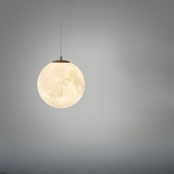 Variable Hanging Length Moon Pendant Light Adapted for Led & Incandescent/ Fluorescent with Chalk Polymer Shade for Non-Residential Use, Shade, 110V-120V, 6"
