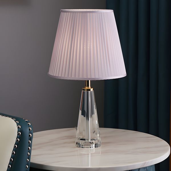 Elegant Faceted Crystal Bedside Lamp with Gold Accents and Pleated Shade - 110V-120V Purple