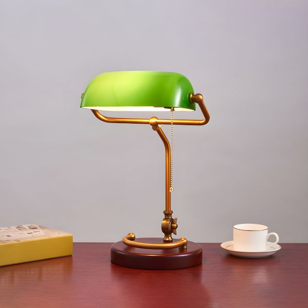 Classic Green Glass Banker’s Desk Lamp with Solid Wood Base and Adjustable Tilt Shade - 110V-120V