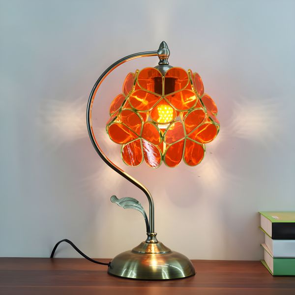 Cluster-Flower Table Light Tiffany Style Glass Nightstand Lamp for Bedroom - 110V-120V Plug In Electric Burgundy Dimmer