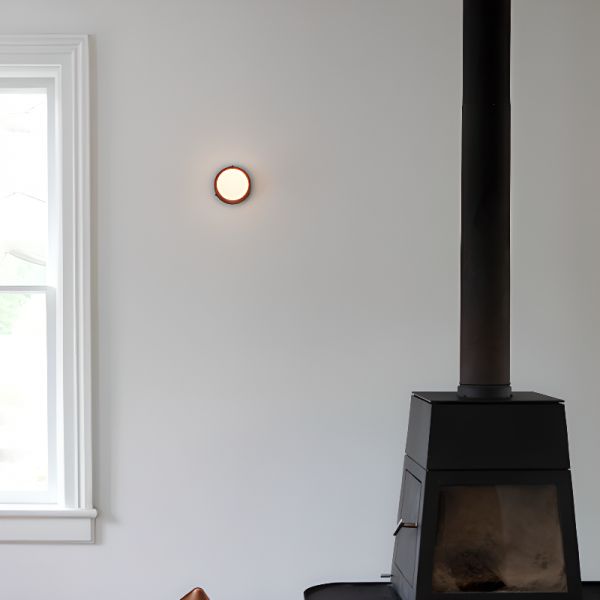 Mid-Century Minimalist Round Wall Sconce, Colorful Metal Base with Opal Glass Globe Light - 110V-120V Burgundy