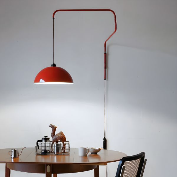 Contemporary Cantilever Wall Lamp, Plug-In Swing Arm Light with Oversized 23.6" Dome Shade - Red 110V-120V