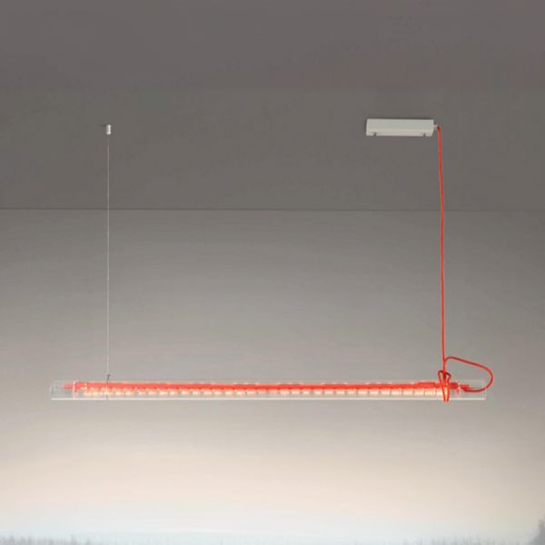 Contemporary Industrial Linear Pendant Light, Transparent Glass Tube LED Fixture for Dining or Office - Red 110V-120V