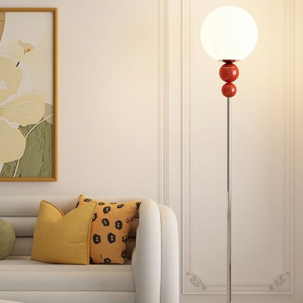 Postmodern Globe Floor Lamp, Tall Standing Light with Stacked Sphere Accent and Weighted Base - 110V-120V Red