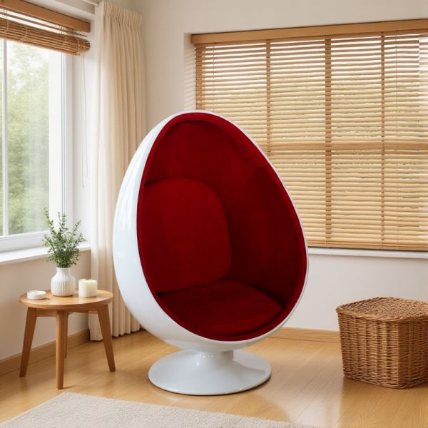 Modern Egg Pod Swivel Accent Chair, Glossy White Fiberglass Lounge Seat for Living Room - Red Vegetable Fiber