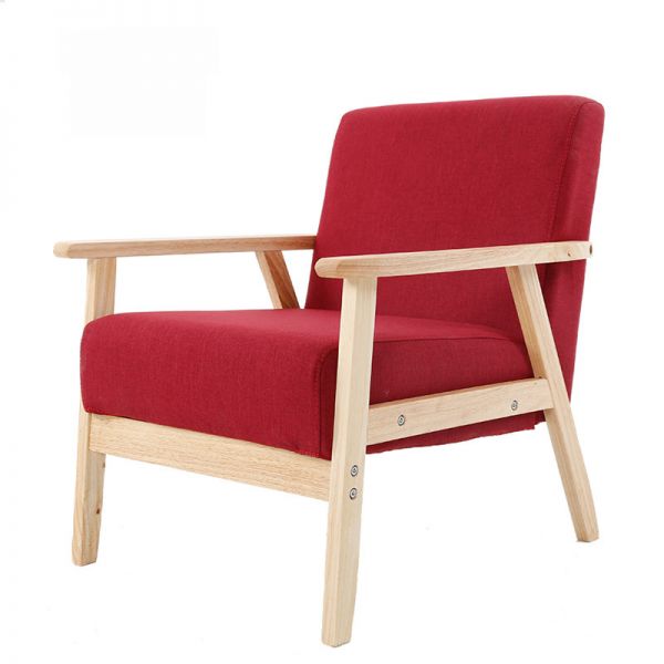Mid-Century Solid Wood Accent Chair with Armrests, Green Fabric Cushions, Living Room Lounge Seat - Linen Red