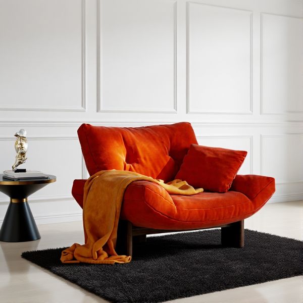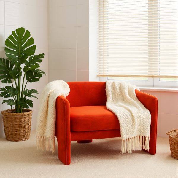 Modern Green Upholstered Lounge Chair with Pillow, Wide Seat, Solid Wood Legs for Living Room - Red Linen