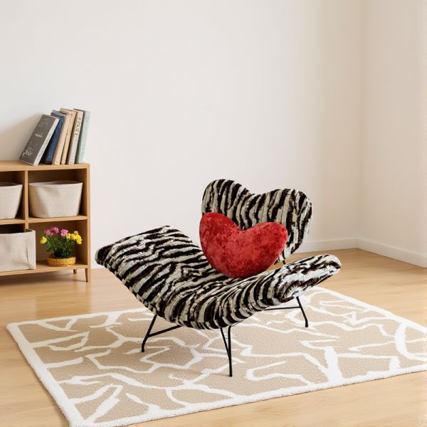 Contemporary Lounge Accent Chair with Heart Pillow, Plush Striped Upholstery, Metal Legs for Living - Red Black White Rabbit Plush