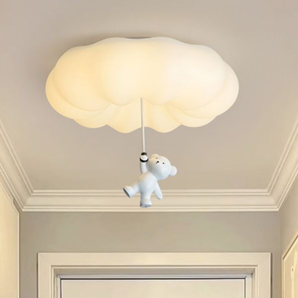 Metal Cloud Flushmount Lighting Kids LED White Ceiling Lamp in Remote Control Stepless Dimming for Bedroom, 21.5" Width