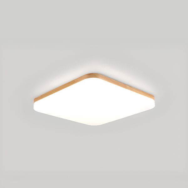 Natural Wood Rectilinear 1 Light LED Ceiling Light Fixture with Wireless Stepless Dimming Acrylic Shade for Residential Use, 110V-120V, 20"