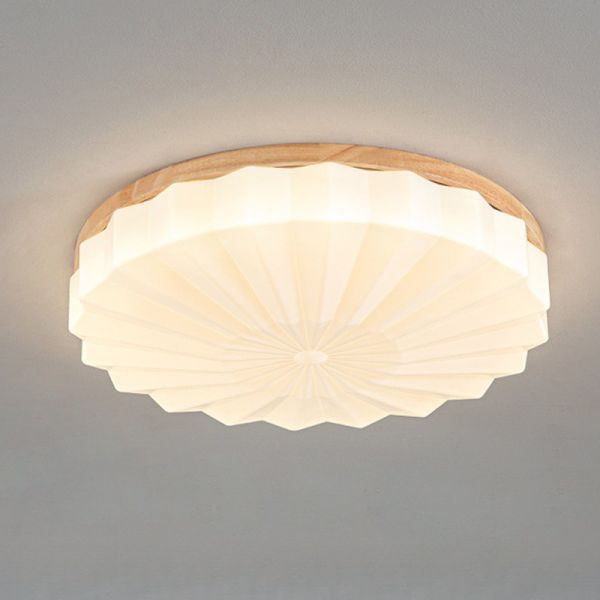 Natural Wood Ceiling Light, Remote Control Stepless Dimming, Symmetrical Shape, 1 Light, Surface Mount, Direct Wired Electric for Sitting Room, 110V-120V