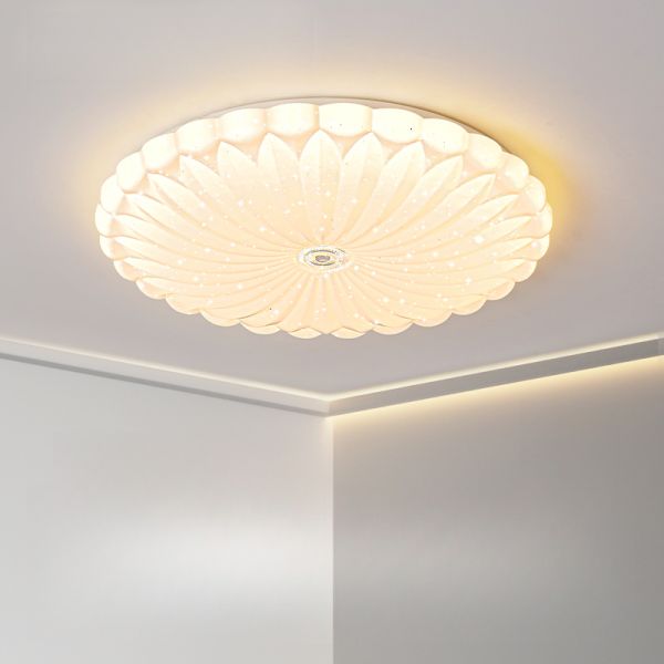 Flush Mount Light with Continuous Dimming Via Remote, Chalk Color, 1 Light, Polymer Shade, LED Alloy, Simple Style, 110V-120V, 16", Round