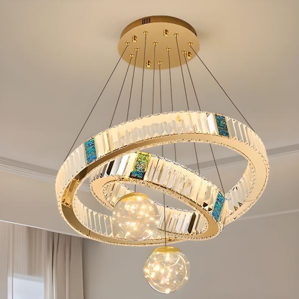 Remote Control Stepless Dimming 2 Tiers Transparent Chandelier with Adjustable Height, 110V-120V, 16"+23.5"