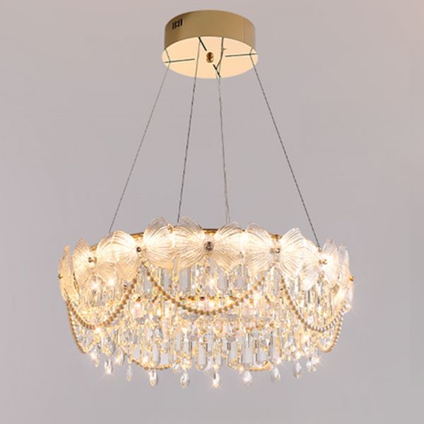 Remote Control Stepless Dimming Chandelier with Transparent Shade and Adjustable Height, 110V-120V, 21"
