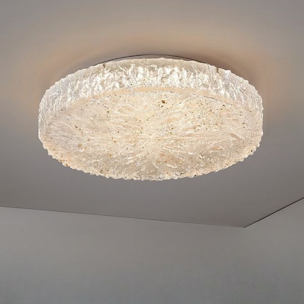 Rock Crystal Ceiling Lighting with Translucent Smooth Dimming Control, 1 Light Exposed Mount, Steel and Hardwired, 110V-120V, 19.5", Transparent/Gold