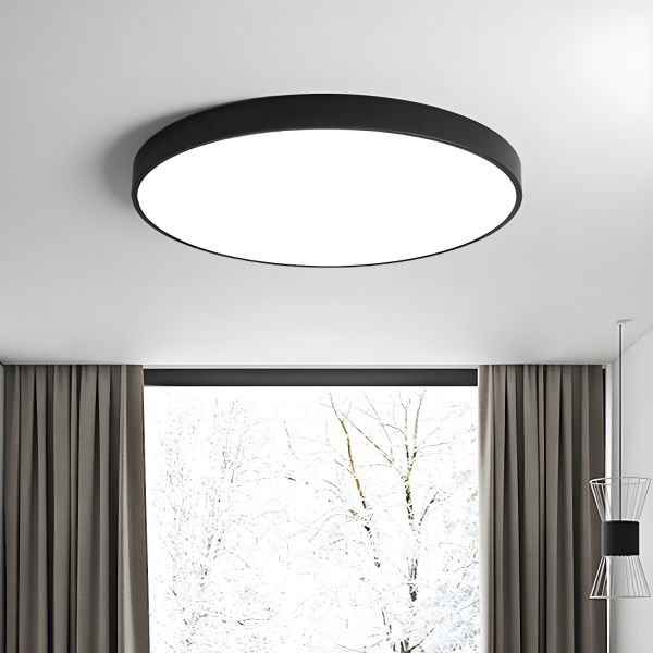 Scandinavian LED Flush Mount Ceiling Light, Low Profile Round Fixture for Low Ceilings - Black 110V-120V 16" Remote Control Stepless Dimming