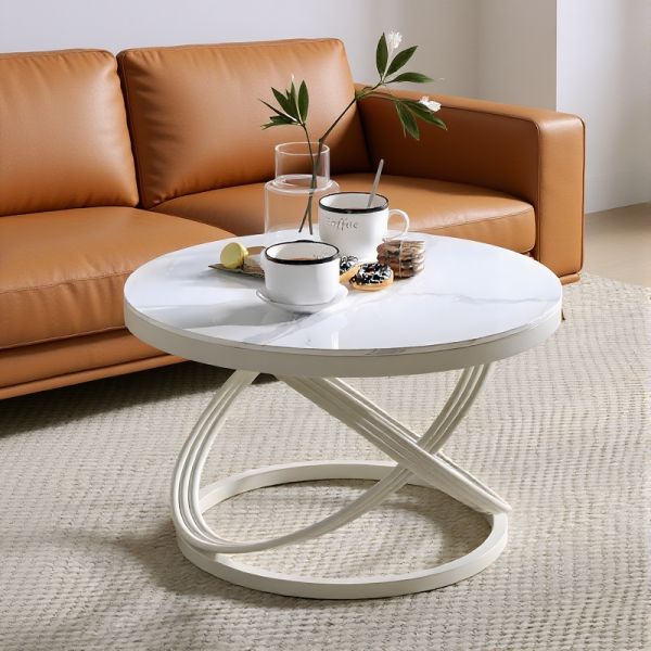 Round White Coffee Table with Sculptural X-Loop Base, Modern Living Room Accent - White White 20"L x 20"W x 18"H