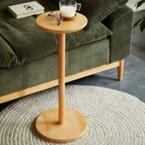 Round Wood End Table, Minimalist Pedestal Drink Stand for Sofa & Living Room - Natural 13.8"L x 13.8"W x 35.4"H