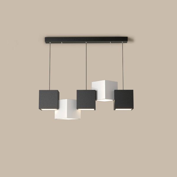 Square Iron 5 Lights Hanging Light Over Kitchen Table, 110V-120V, Black-white