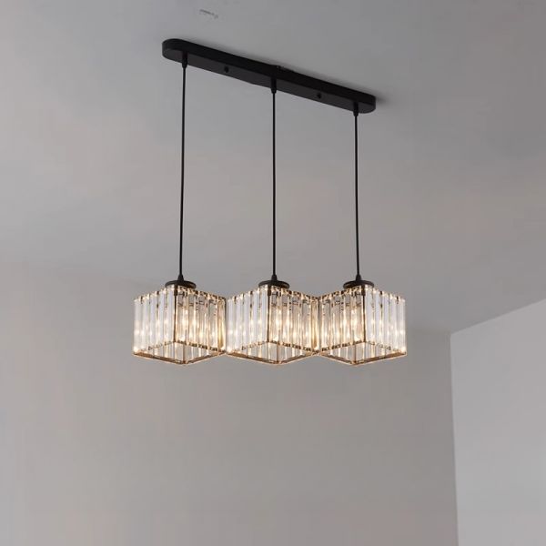3 Lights Pendant Kitchen Island with Cube Clear Shade, 110V-120V, Cube